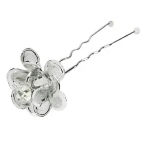 Epingles cheveux décoratifs Florale avec Strass Argent x 5