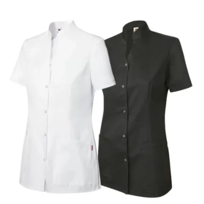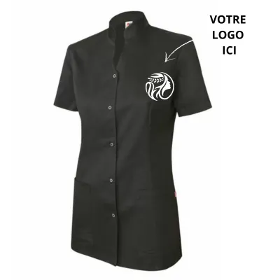 Pratique et facile à porter, cette tunique femme est composée de 65 % de polyester et de 35 % de coton. Son design permet aux mouvements des professionnels de rester dans le confort. Pour faciliter l’enfilage de cette blouse, la marque Velilla a choisi des boutons pressions aux anneaux métalliques comme fermeture de la blouse. L’entretien de cette tunique ne requière pas grand-chose pour assurer l’hygiène. Sa matière résistante supporte parfaitement le lavage à haute température. Fermeture : bouton pression