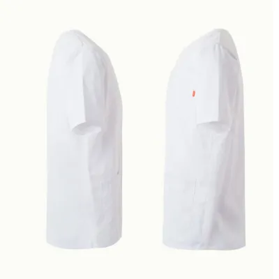 Tunique/Blouse femme destinée aux esthéticienne, masseuse ou maquilleuse. Fermeture centrale à bouton-pression. Col en V De la marque Velilla permet aux professionnels de rester tendance même au travail. Pour cette tunique femme, la marque a misé sur une coupe partiellement cintrée. Cette blouse à manches courtes est dotée de 2 poches avant, permettant à l’utilisateur d’y glisser des petits accessoires pour les avoir à portée de main. Le col Mao de la tunique et ses fentes latérales apporte du style au vêtement de travail. Ouvertures latérales, manches courtes.