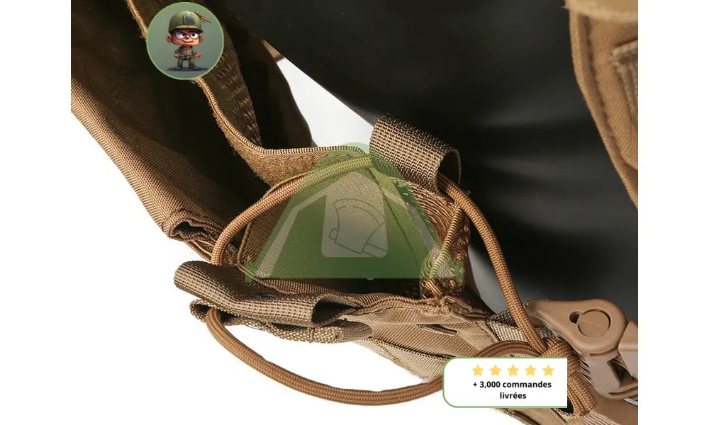 - Système Molle et une surface velcro pour accrocher des engrenages par exemple