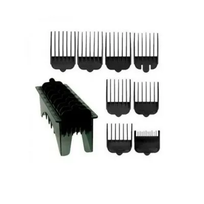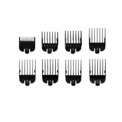 Jeu de 8 guides de coupe en plastique noir Wahl. Lot de 8 sabots (n°1, 2, 3, 4, 5, 6, 7, 8) pour :