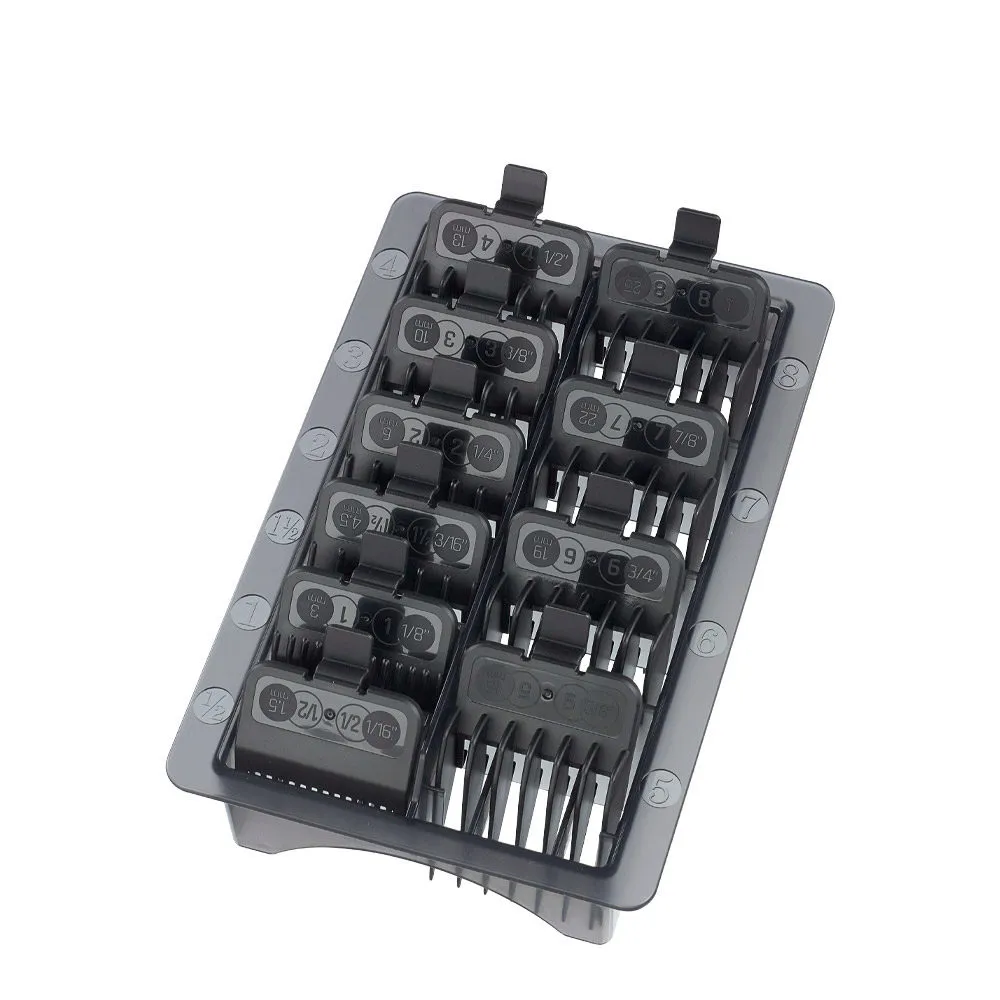 Lot de 10 contre-peignes noirs (tailles 1/2, 1, 1 1/2, 2, 3, 4, 5, 6, 7.8) compatibles avec tondeuses de coupe Ultron Enki.