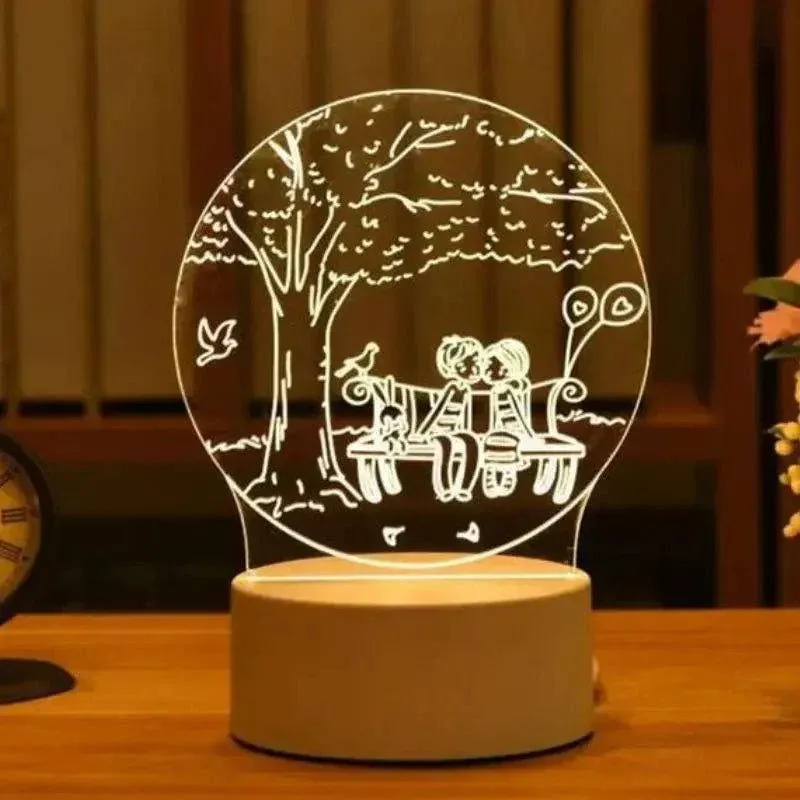 - Design 3D Captivant : Cette lampe utilise un effet 3D pour créer une illusion visuelle étonnante, donnant vie au couple assis sur le banc. Un véritable accroche-regard qui émerveillera petits et grands.