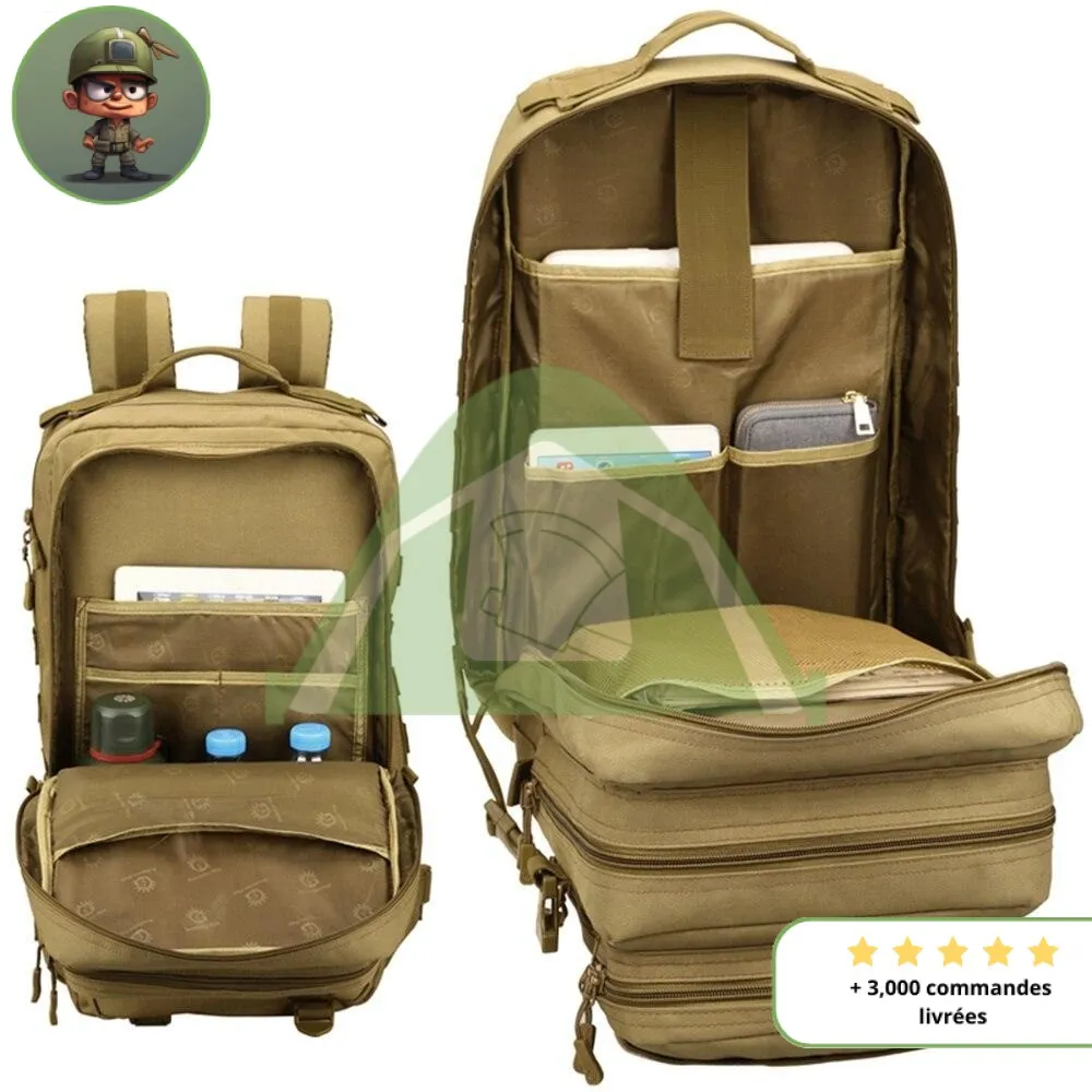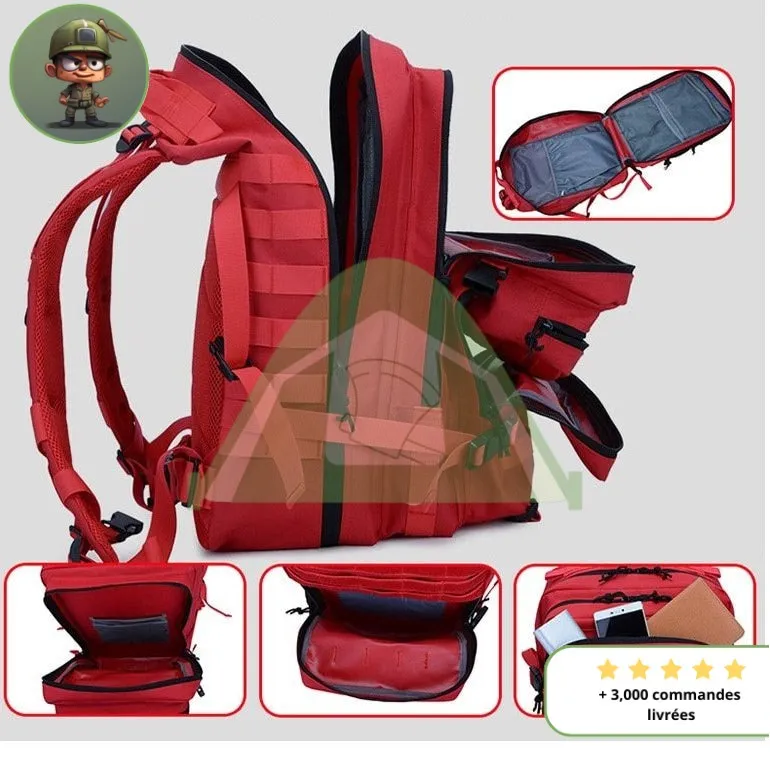 - Sac de grande capacité (40 litres environ) et de multiples rangements